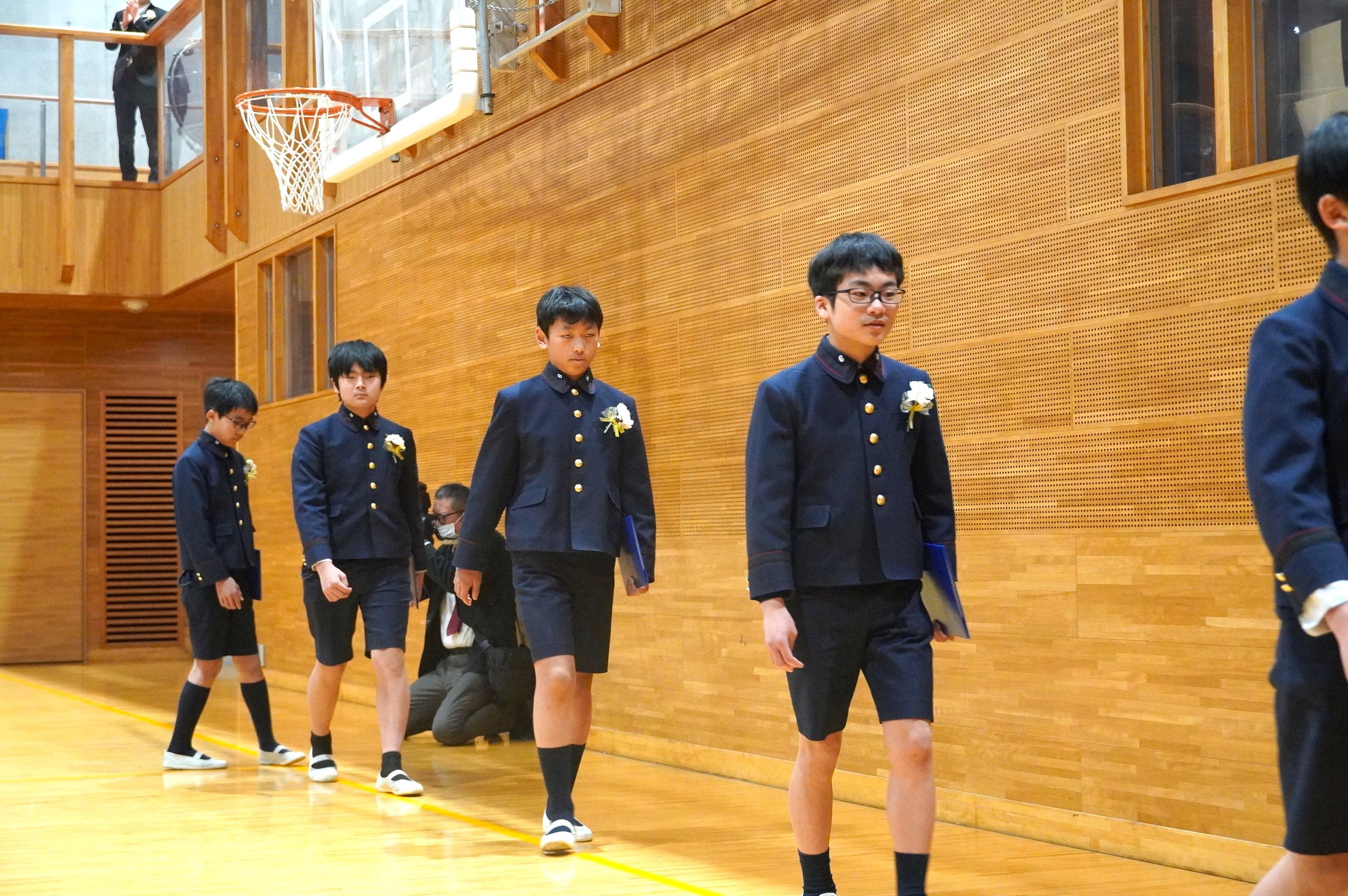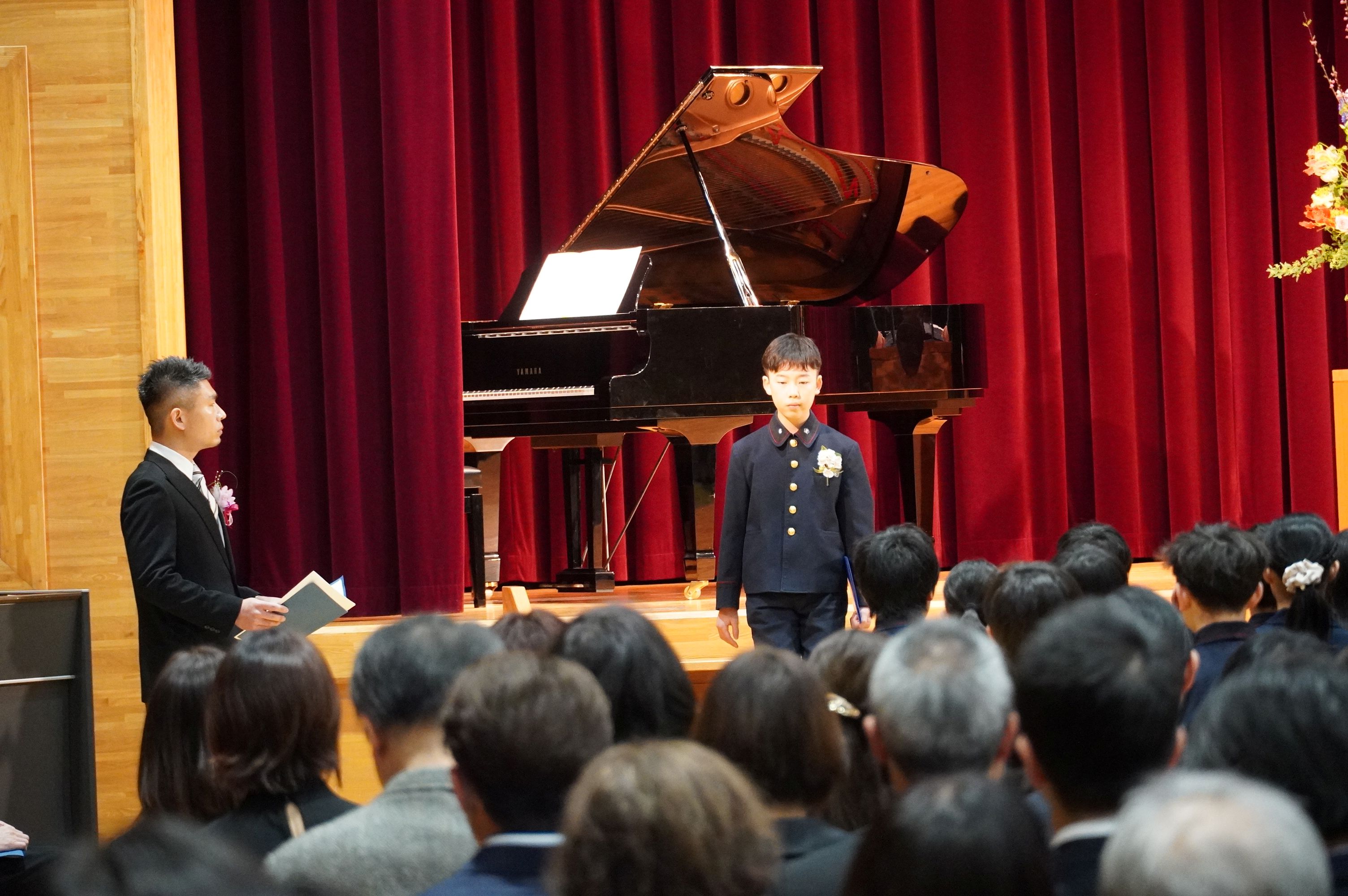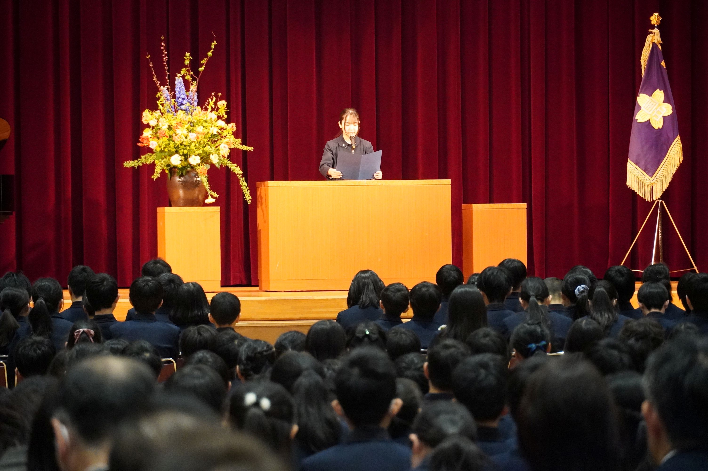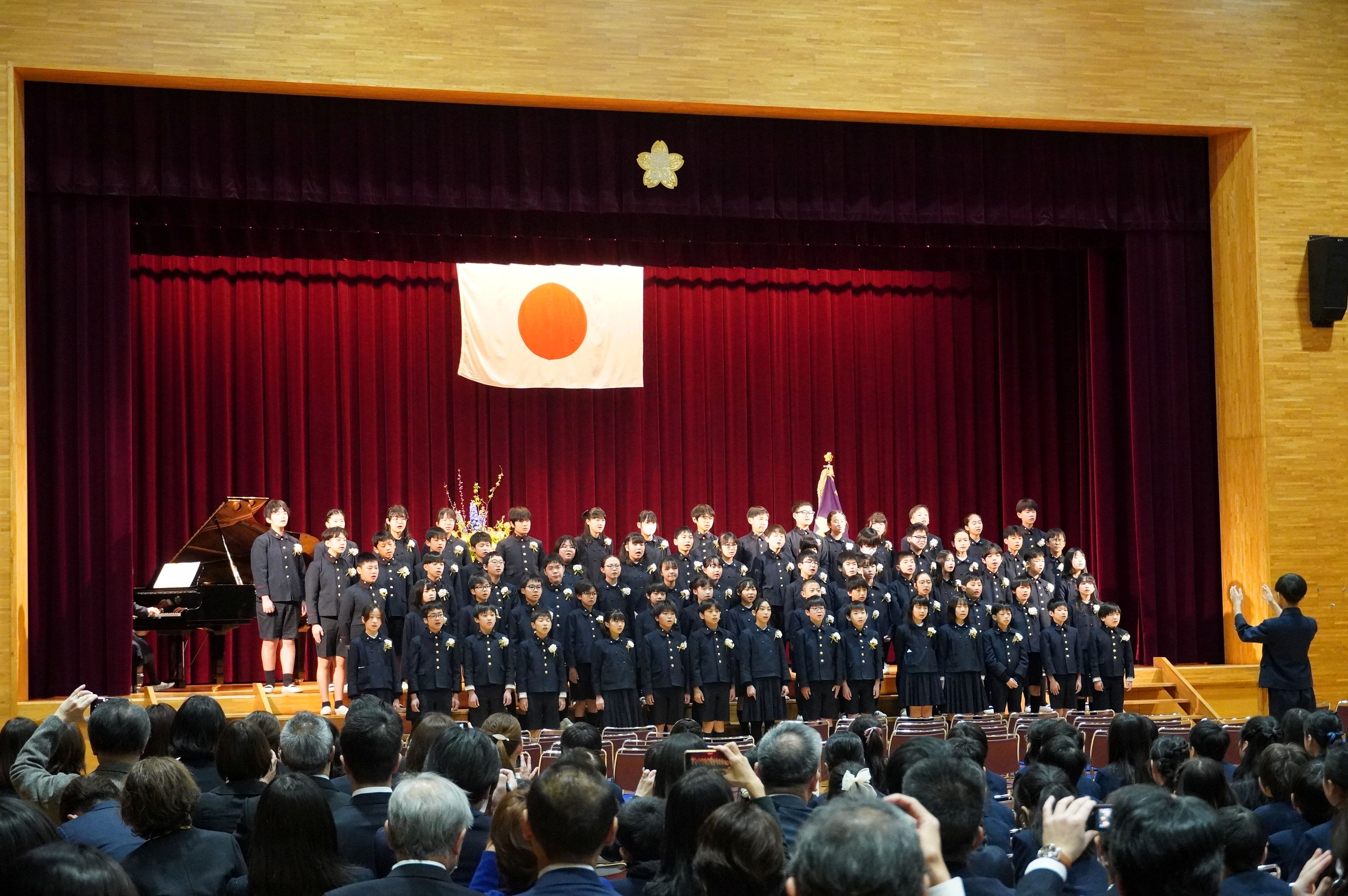 登校後の教室では、少しそわそわした様子を見せながらも、友だちや先生と楽しそうに話したり笑いあったりしていました。卒業式が始まり、壇上で卒業証書を受け取る99期生の一人一人の表情は逞しく、堂々としたものでした。4・5年生の子どもたちもその姿を見守りつつ、共に門出を祝うことができました。