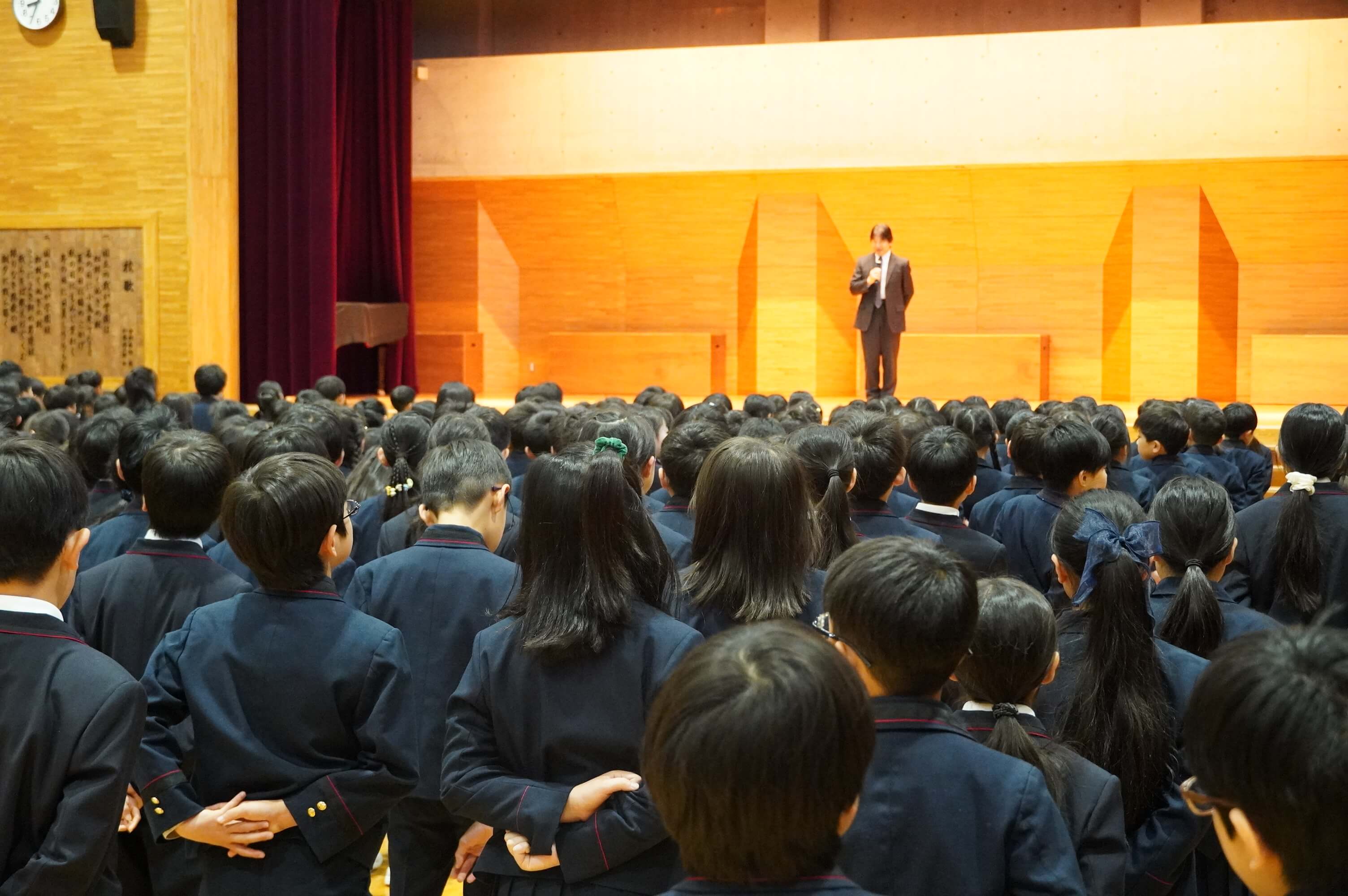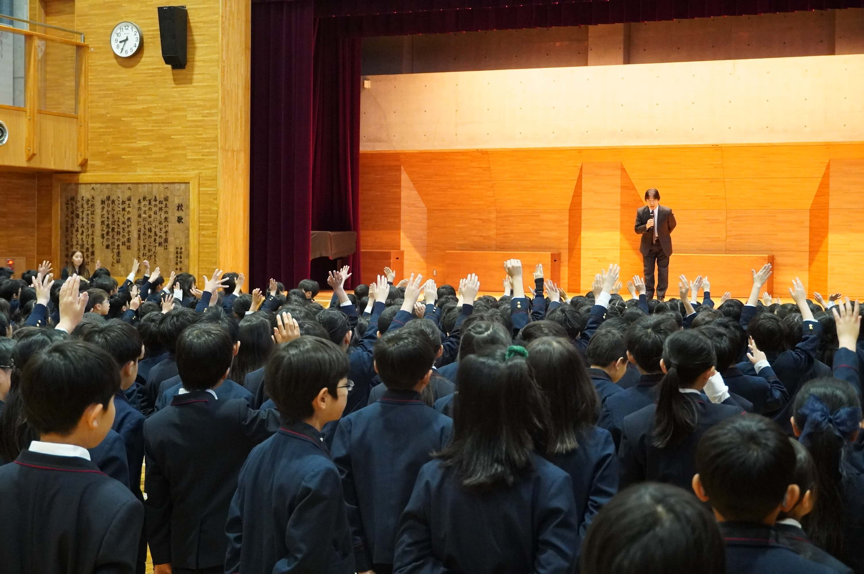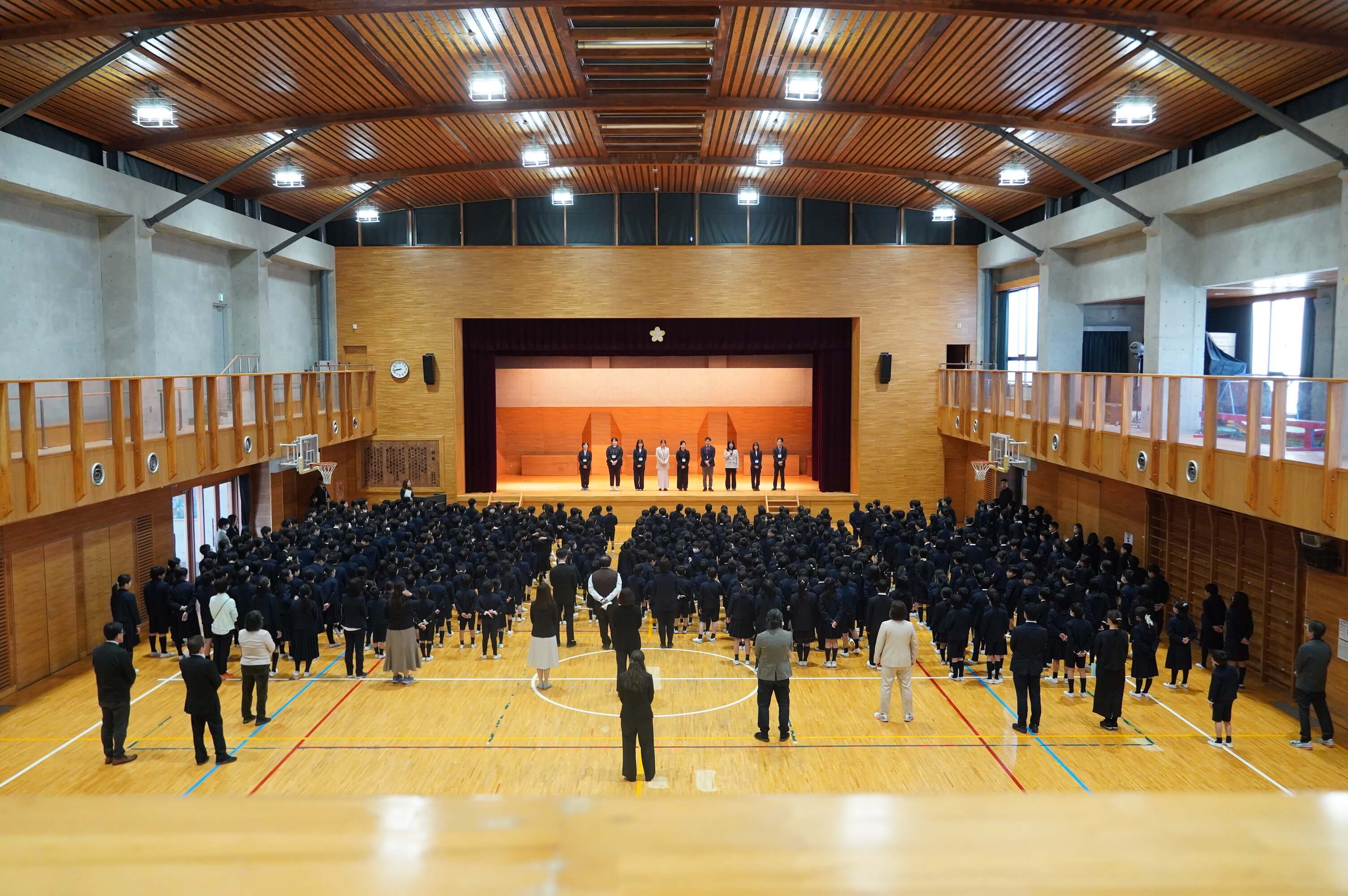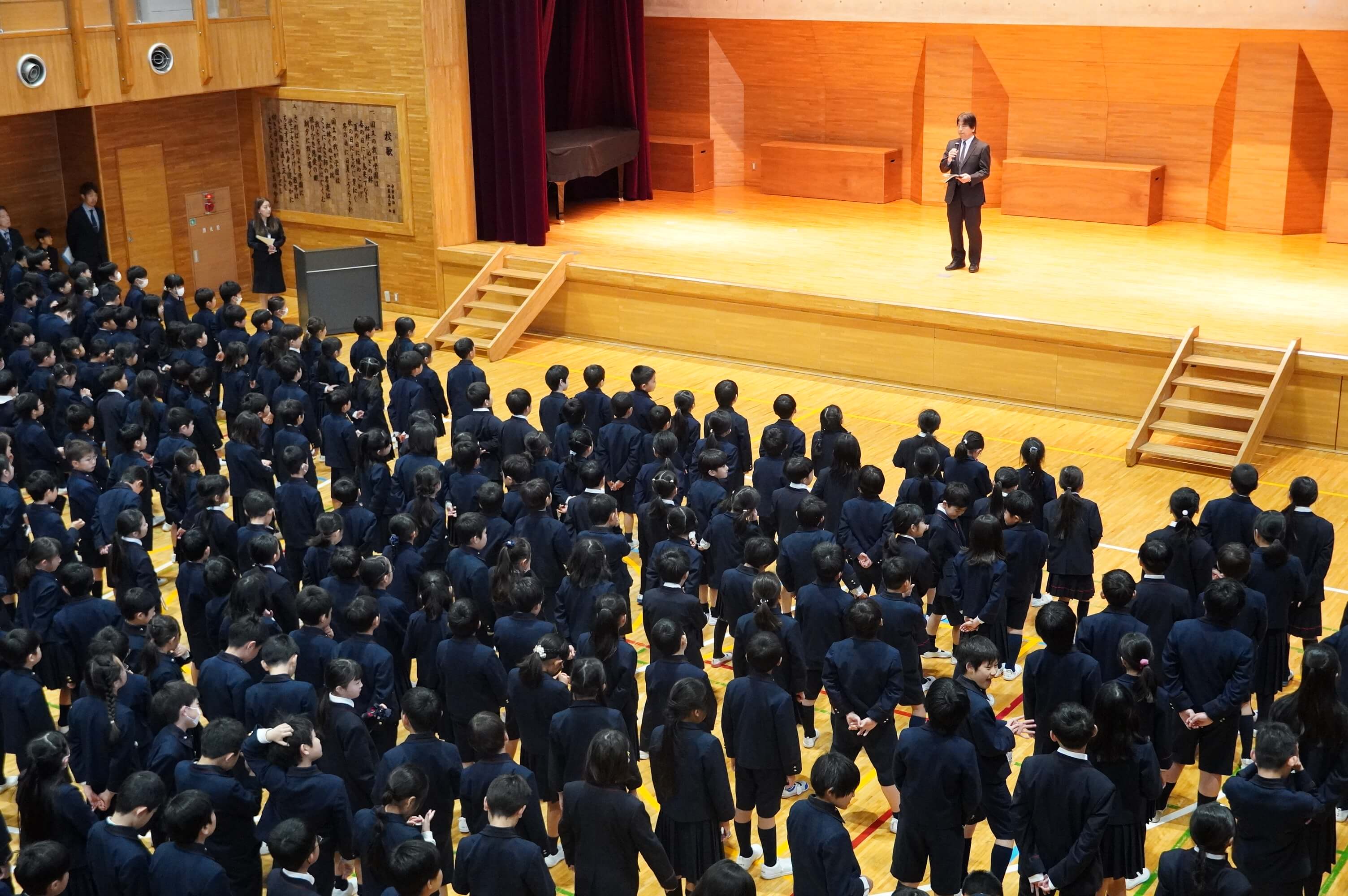 4月8日水曜日、2026年度1学期始業式を行いました。校庭の桜が散り始め、地面に落ちたピンクの花びらが色鮮やかに子どもたちの足元を彩っています。春休み明け、久しぶりに会う友だちとの会話に夢中で桜のことはあまり目に入っていない様子の子どもたち。学校の門が新しくなったことにも気づかずに、友だちを見つけて駆け寄る子もいれば、新しい門に興味深々の子も。制服も、今日から新しいものを着用している子がたくさんいました。