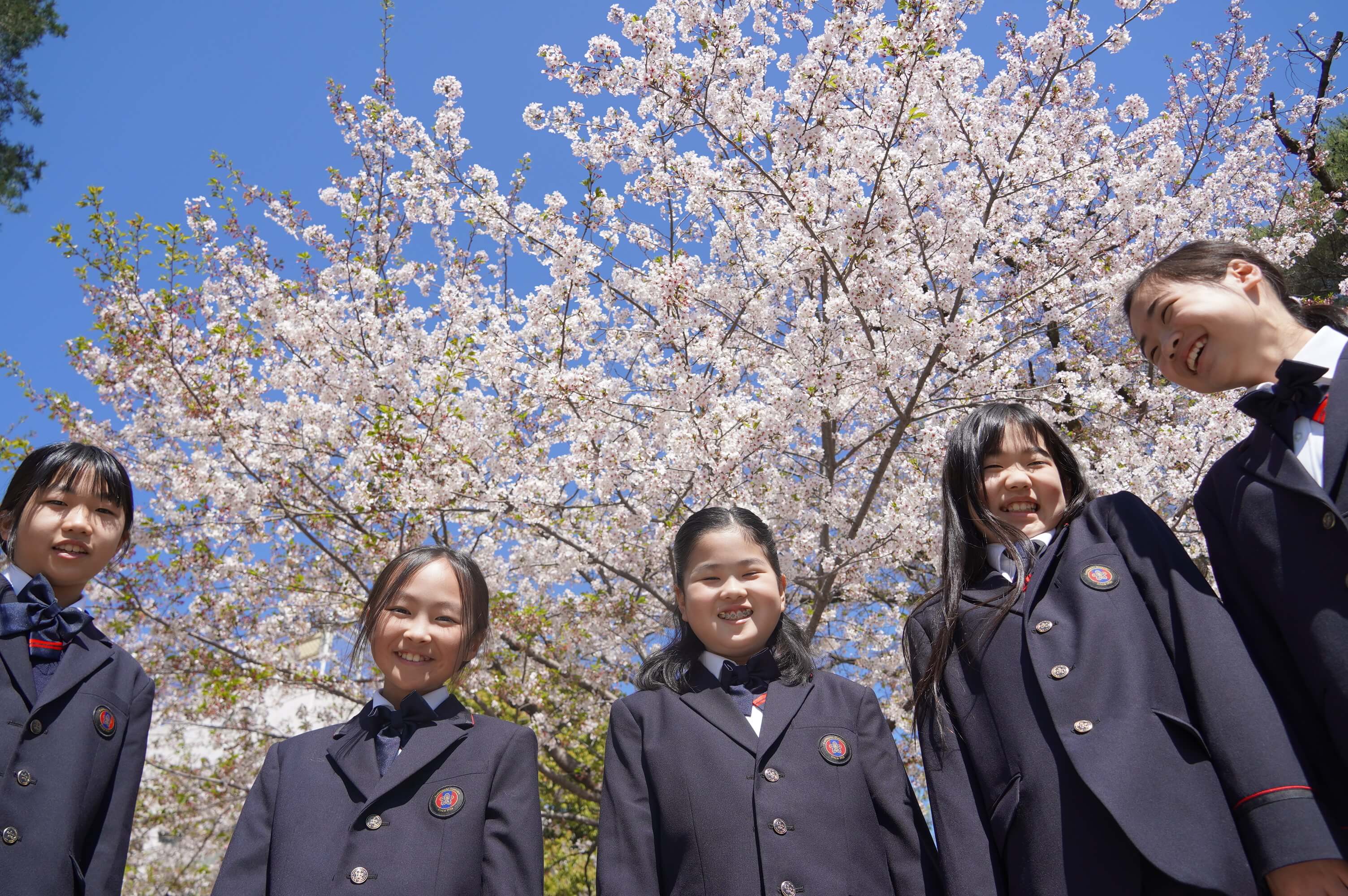 お天気もよく、まだ咲いている桜の木の下で記念撮影もできました。桜のピンク・菜の花の黄色に本校の制服がよく映えます。