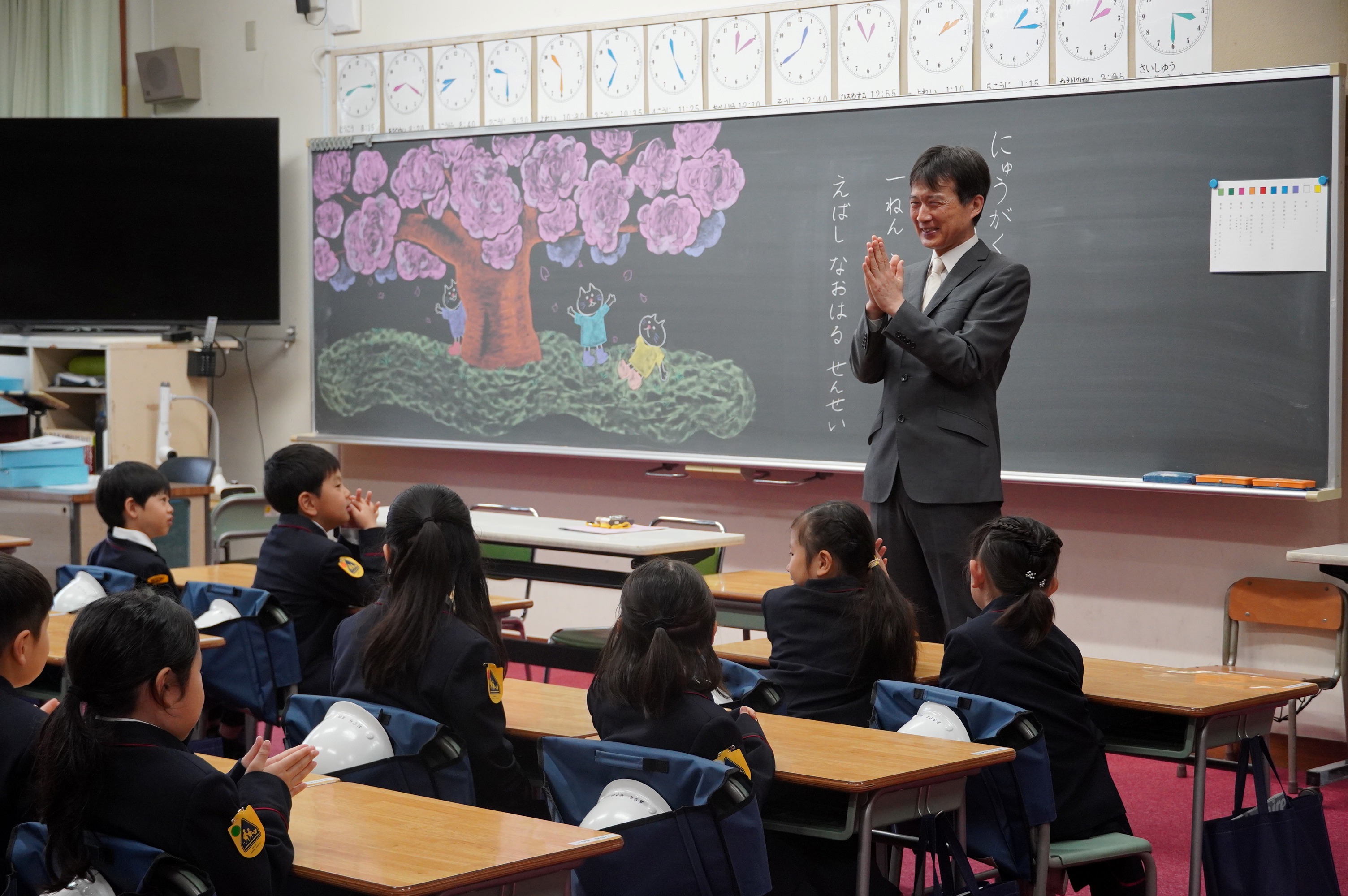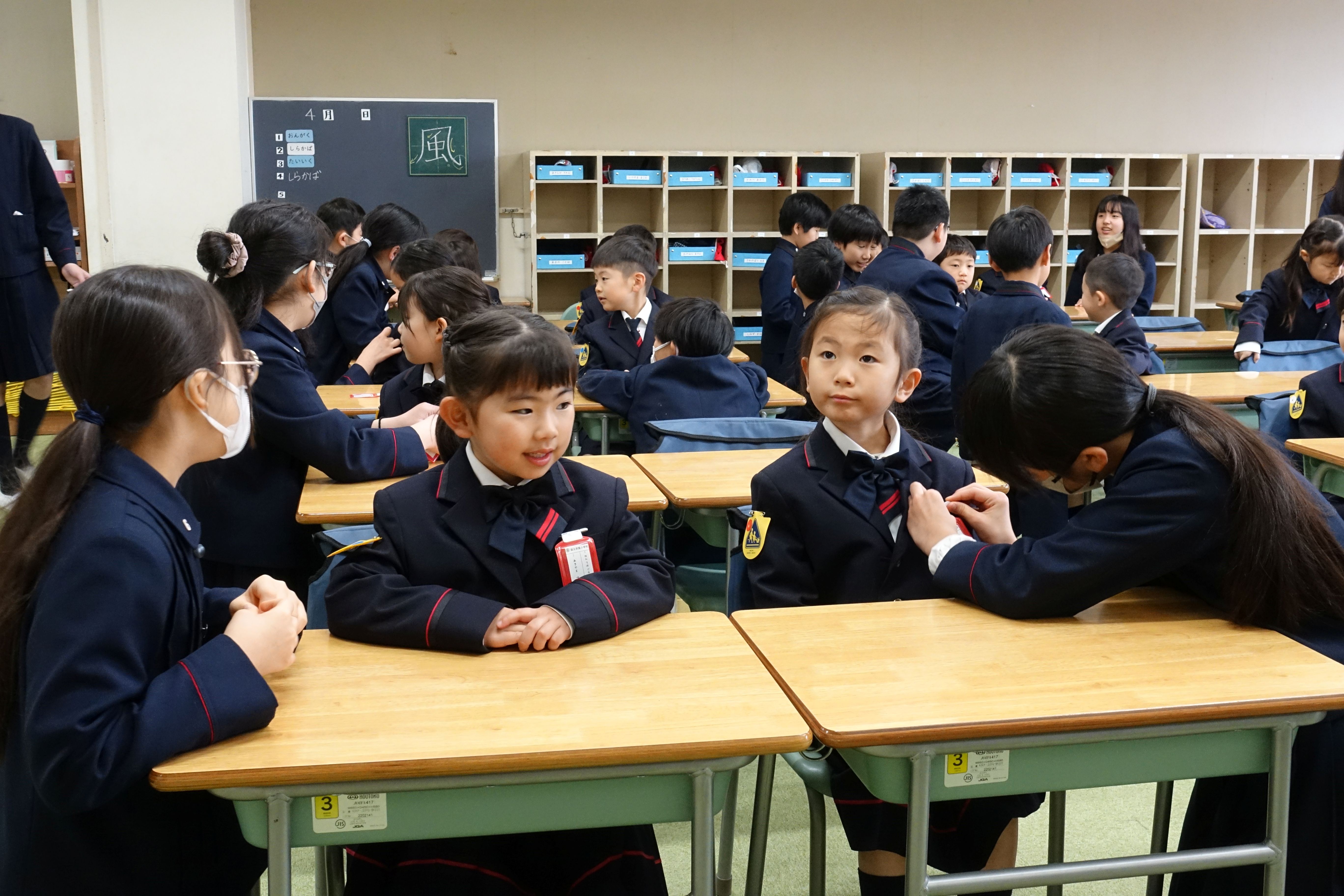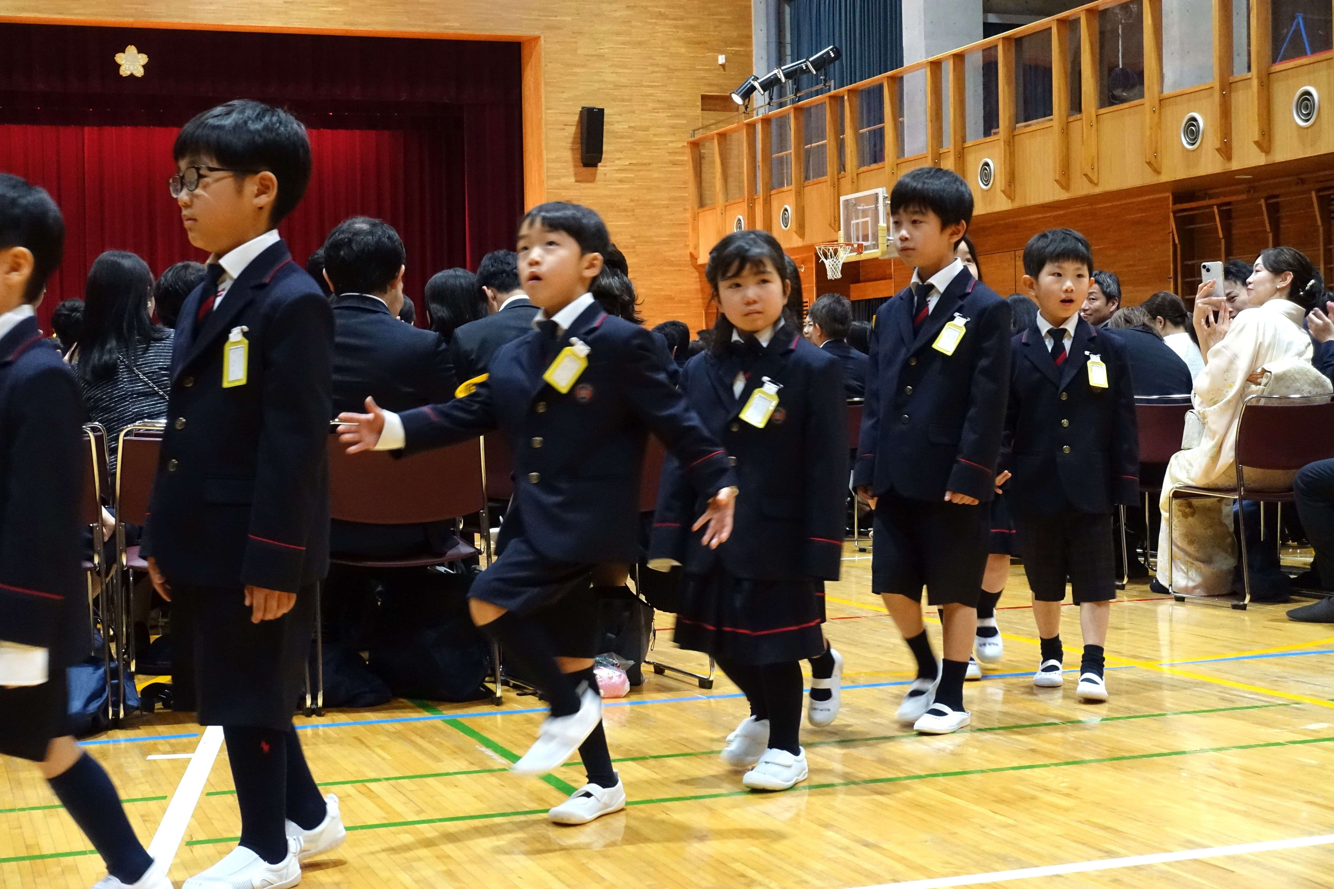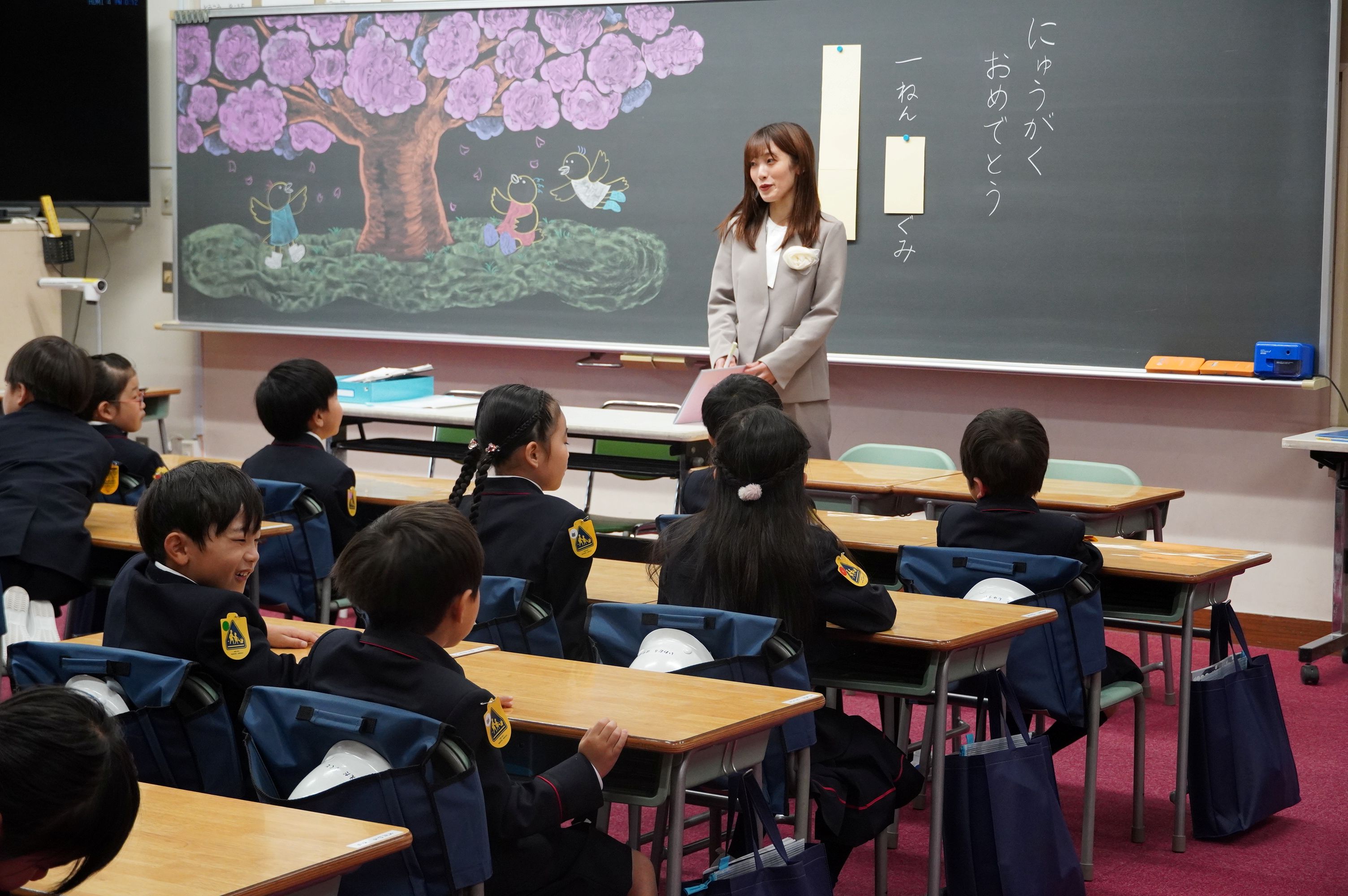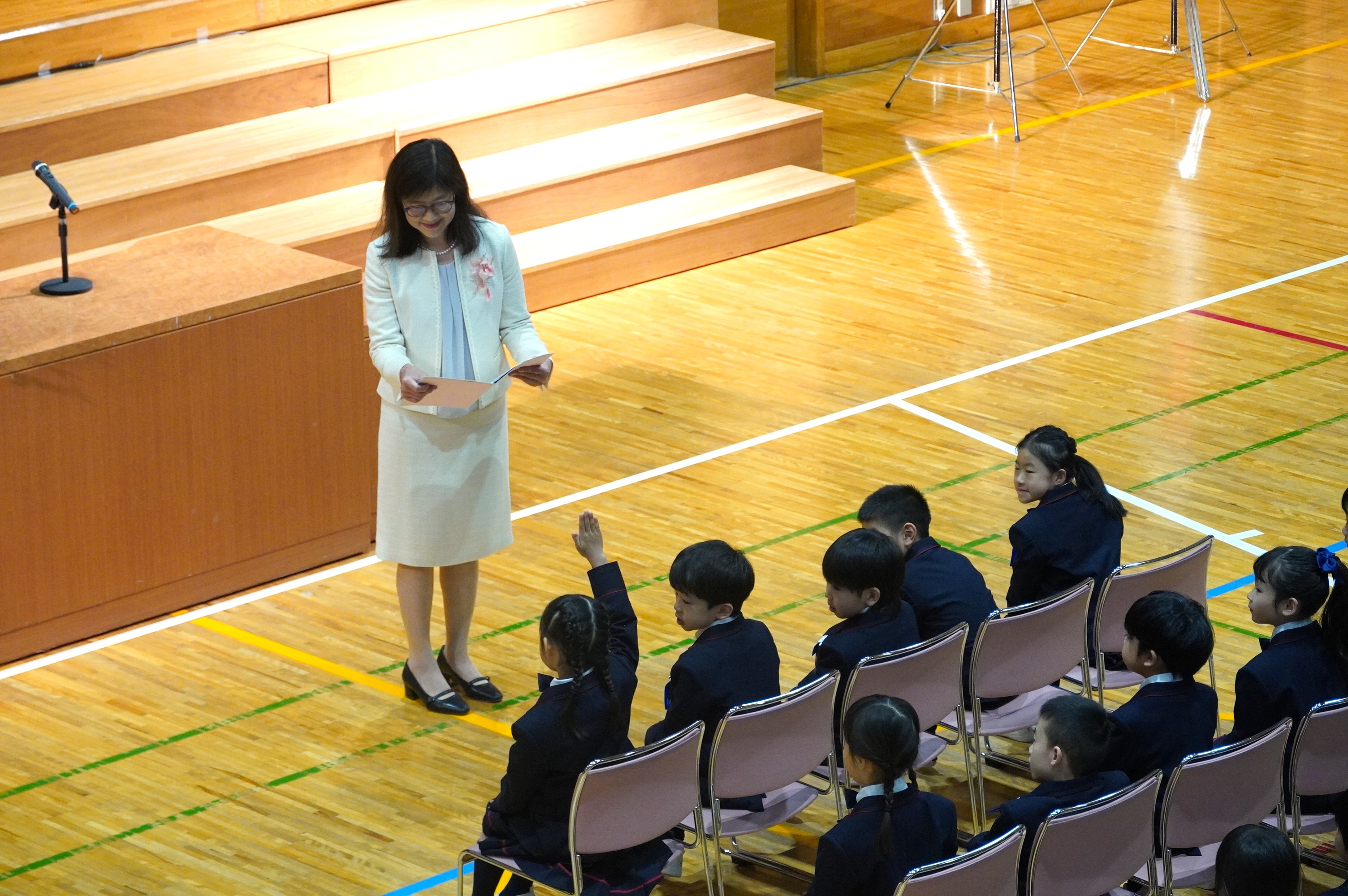新入生は、少し緊張した様子を見せながらも、一人一人がしっかりと前を向き、立派に入退場することができました。また、担任の呼名に対しても、元気よく返事をする姿がとても印象的でした。式では、校長先生より、「赤と青のおはじきはどちらが多いか」というお話がありました。子どもたちからは、単に数えるだけでなく、長さや重さなど、さまざまな比べ方の考えが出されました。本学園では、教師が一方的に教える授業ではなく、子どもたちとともに授業をつくっていくことを大切にしています。そのことが伝わる校長先生のお話でした。