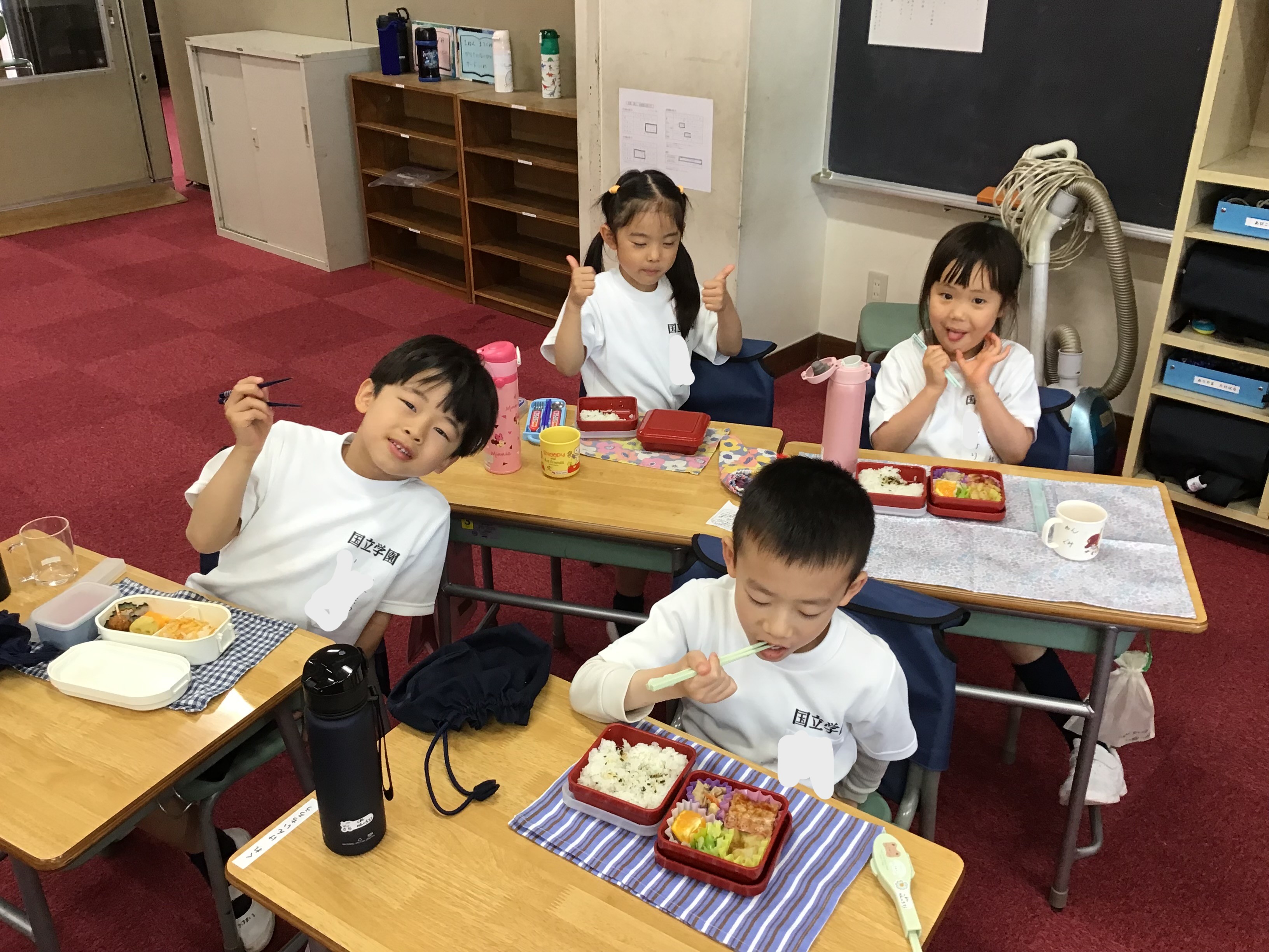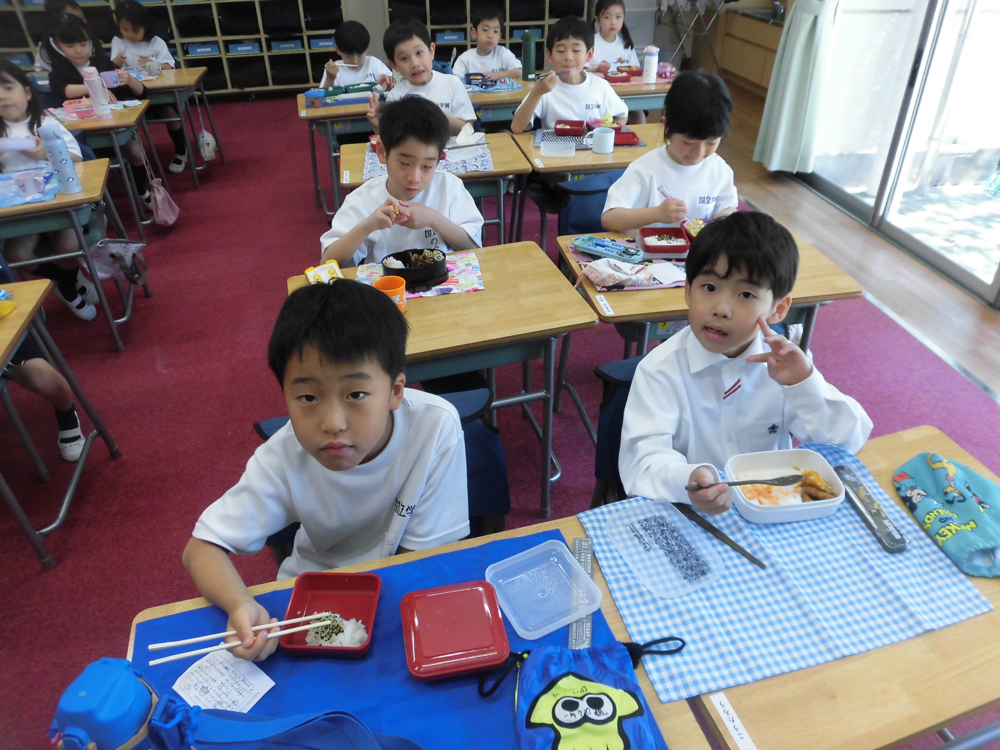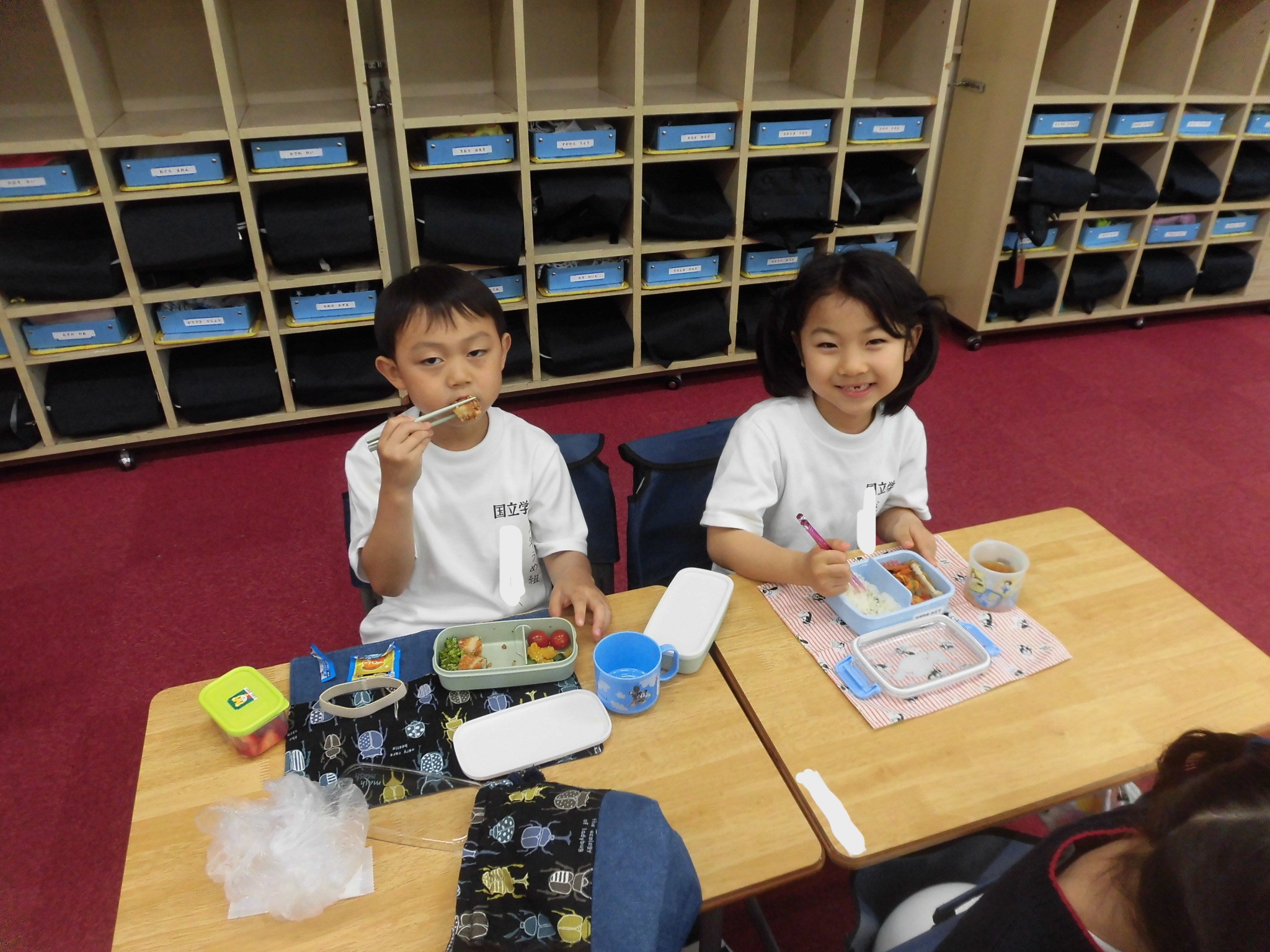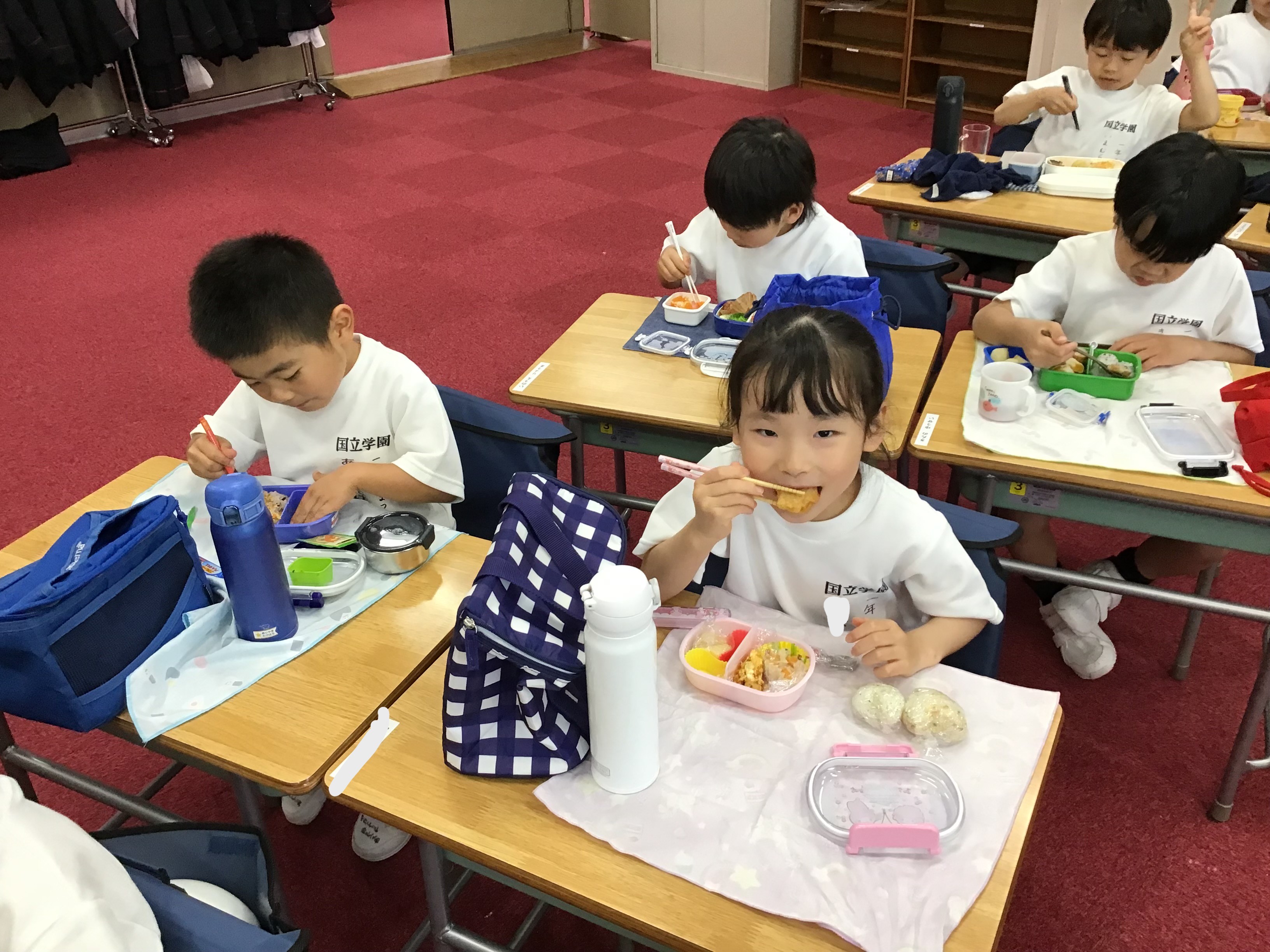 教室でお弁当を広げ、友達と一緒に楽しく食べる姿が見られました。初めての学校での昼食に少し緊張した様子もありましたが、「おいしいね」と笑顔で話す様子がとても印象的でした。